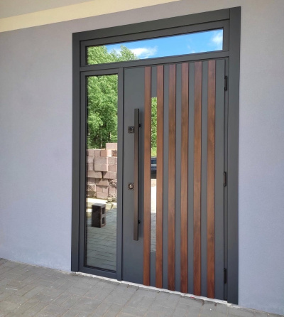 Для классики и «теплого» ощущения выбирают панели: дверь массив (дверь из массива), шпон, отделка под венге, беленый дуб или светлый оттенок. В тренде и спокойные серые решения: дверь светлая или светлая арочная дверь хорошо смотрится на современных фасадах, а белая входная дверь добавляет парадности. Если хочется контраста, делают дверь черного цвета, а в классических интерьерах заходят покрытия в стиле антик и даже нитроэмаль (когда нужен именно такой эффект).