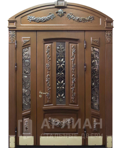 Входные арочные двери выбирают не только из любви к красивым фасадам. Арка помогает подчеркнуть архитектуру входной группы, аккуратно «собирает» высокий проем и делает его визуально легче. Поэтому металлические арочные двери чаще всего ставят в частные дома, но арочный формат встречается и в городской среде — например, когда нужен выразительный вход в подъезд или нестандартная входная квартирная дверь.