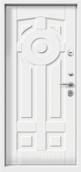 Белая входная дверь с отделкой ламинатом №77