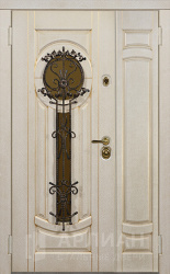 Фото «Металлическая двустворчатая дверь со стеклом и кованой решеткой №15»