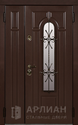 Фото №2 «Металлическая двустворчатая дверь со стеклом и кованой решеткой №15»