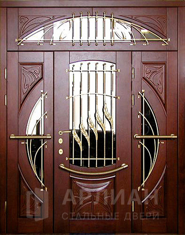 Парадная металлическая дверь с остеклением фрамугой №15