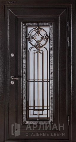 Утепленная входная дверь для коттеджа с кованными элементами №28