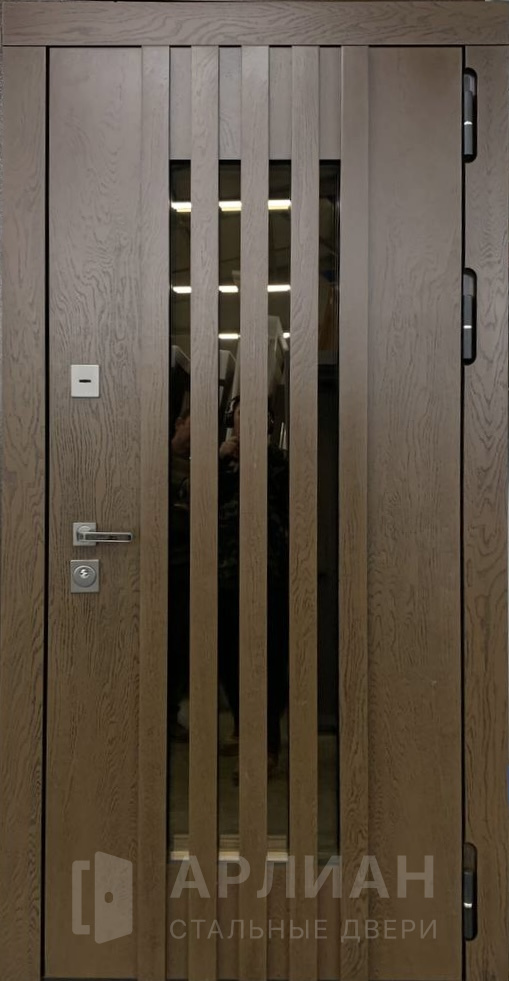 Фото «Коричневая входная дубовая дверь с зеркалом №13»